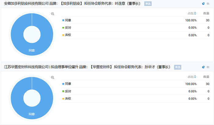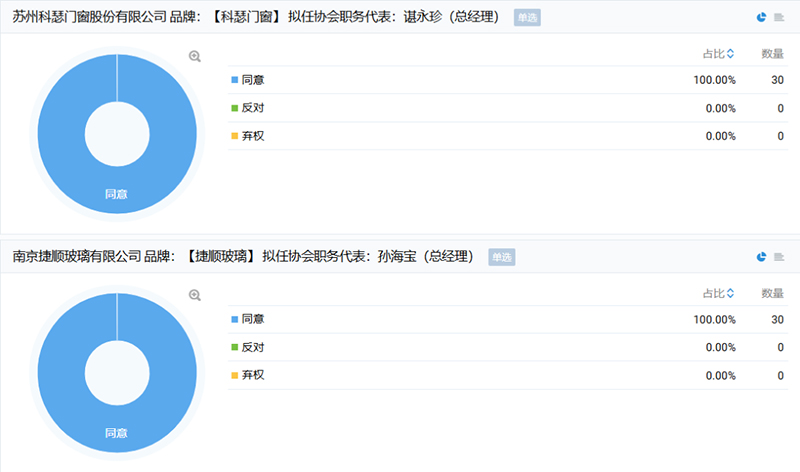 接下来,会议就拟提副会长单位:加多利铝业、华萱科技,拟提理事单位:科瑟门窗、捷顺玻璃,共四家单位的申请增补工作展开讨论,并于现场进行不记名投票表决。