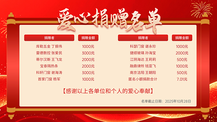 此次活动的圆满成功,离不开每一位心怀大爱的行业伙伴参与。在此,我们谨向所有慷慨解囊、奉献爱心的委员会成员、参与本次捐助的企业及个人,致以最崇高的敬意与最衷心的感谢!是你们的善意,汇聚成星火,照亮了前行的路;是你们的担当,凝结成力量,温暖了需要帮助的人。